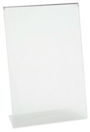 Clear acrylic lightweight card holder for menus, tickets or signs.